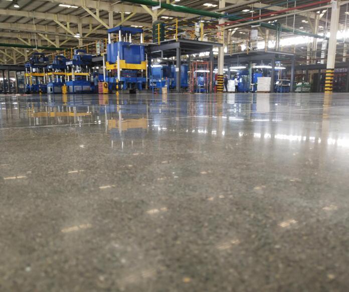 4.施工時(shí)間:約3小時(shí),施工完畢,地坪干燥即可行走。通風(fēng)干燥3天后再用樹(shù)脂磨片(通常300-1000目)拋光,亮度呈現(xiàn)較強(qiáng)光澤。